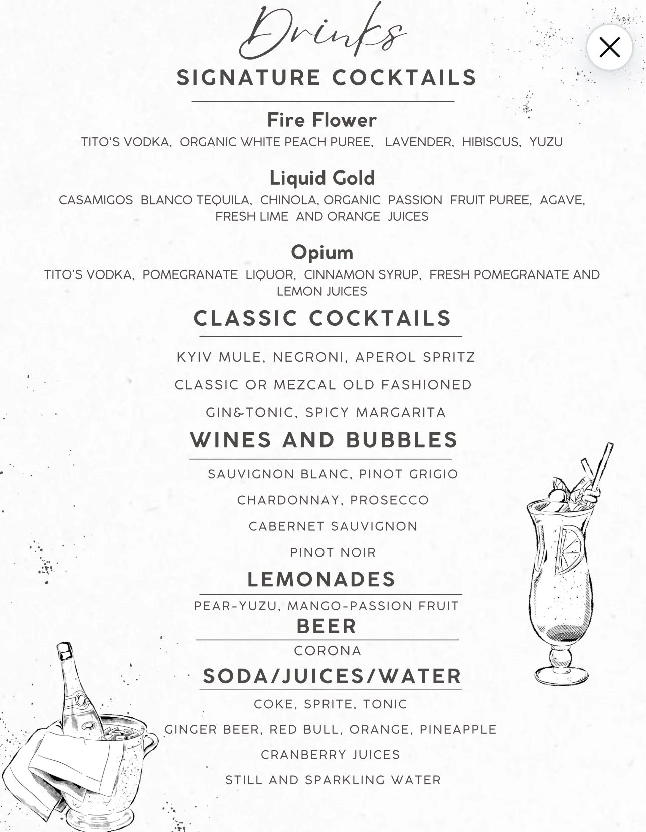 🍸 Homemade ingredients will be provided by mixologist